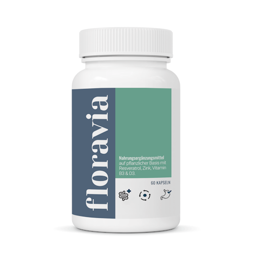 Según la información del producto, Floravia combina extractos de plantas y micronutrientes que, juntos, favorecen el bienestar digestivo. Cada dosis diaria (2 cápsulas) contiene, entre otros, extracto de raíz de Hydrastis canadensis (200 mg, de los cuales 10 mg son berberina), extracto de brotes de catalpa japonesa (120 mg, de los cuales 11,4 mg son quercetina), extracto de raíz de achicoria (100 mg) y extracto de bulbo de ajo negro (100 mg). La fórmula contiene además extracto de anís estrellado (100 mg) y extracto de raíz de regaliz (50 mg); como excipiente se indica harina de arroz. Además, contiene resveratrol (30 mg), vitamina B3 en forma de nicotinamida (16 mg VRN), zinc en forma de óxido de zinc (10 mg VRN) y vitamina D3 en forma de colecalciferol (5 µg VRN). La raíz de achicoria se describe a menudo como fuente de inulina, mientras que la quercetina y el resveratrol pueden tener efectos antioxidantes. El zinc y la vitamina D3 también se asocian con la función de las membranas mucosas. En general, Floravia está concebido como una combinación de plantas que puede favorecer la digestión, la flora intestinal, el metabolismo energético (a través de la vitamina B3) y el bienestar diario.
